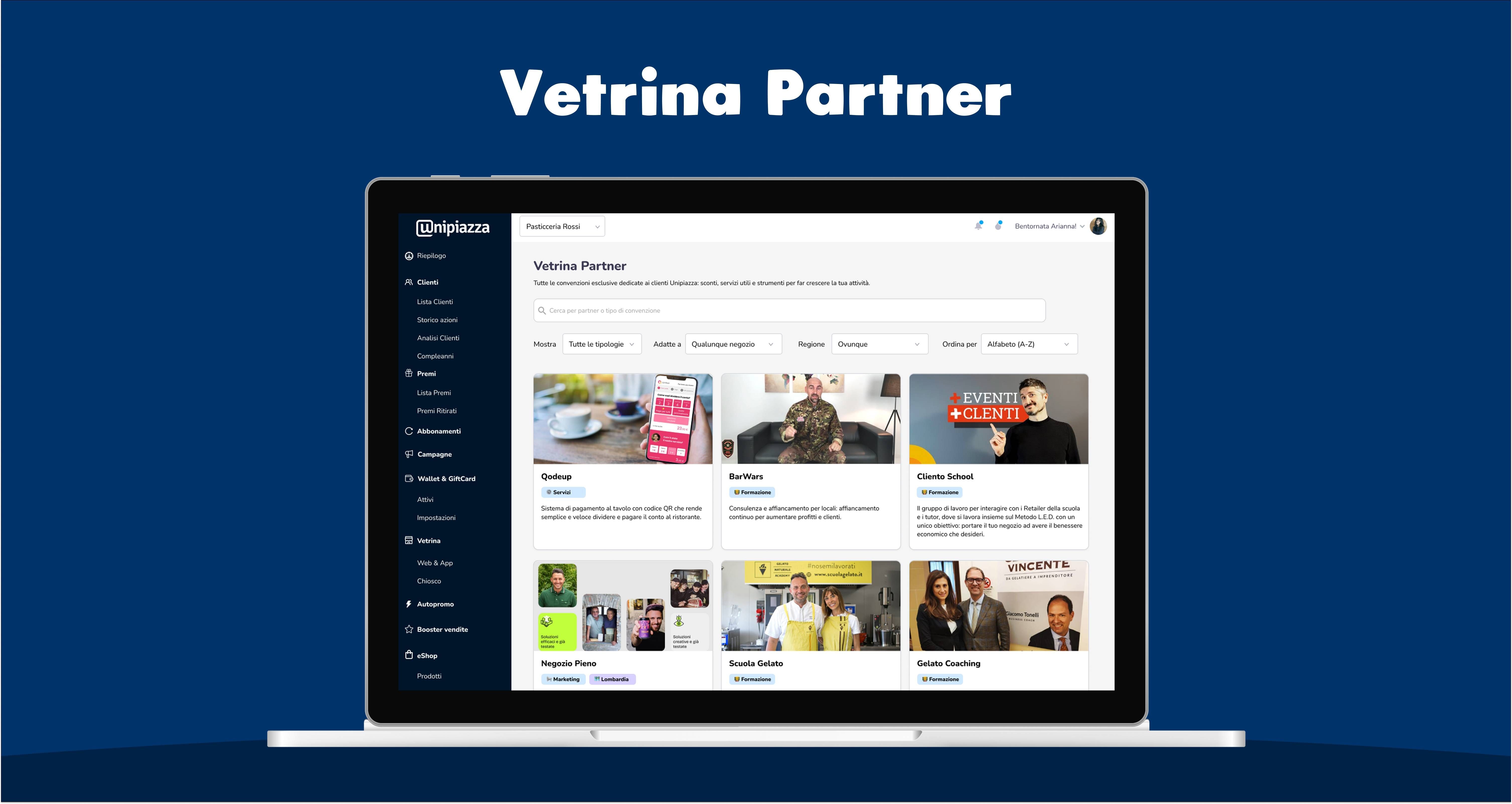 La Scheda Partner è composta da una scheda esterna, con immagine, titolo e descrizione breve, e da una scheda interna, dove inseriremo tutti i dettagli del tuo servizio e dell’offerta dedicata ai clienti Unipiazza.